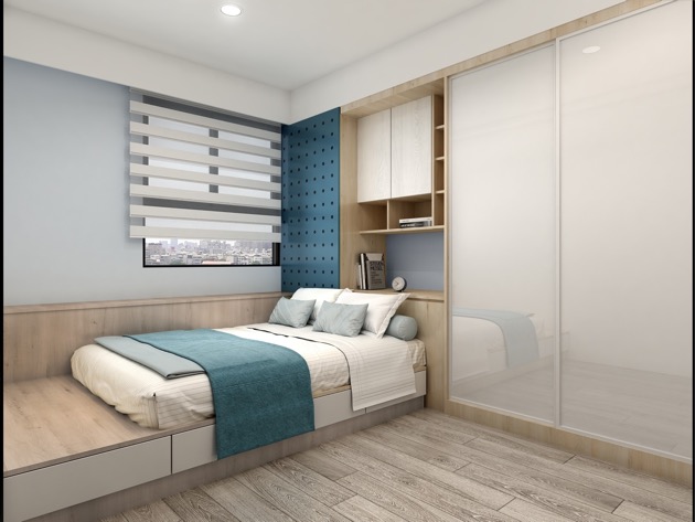 雖然同樣以藍色為主色,但藉由搭配色調不同,自然也能產生截然不同的效果。坪數較小的空間也能使用色階相近天空藍、湖水藍、蔚藍色作為主視覺,結合上溫潤清新木紋,建構出清新和諧的氛圍。